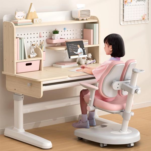 Multifunctional Kids Study Table Chair Set Bookshelf Modern Wooden Ergonomic Adjustable Durable Home Use Smart Desk for Children$145