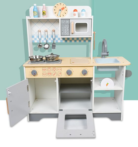 Premium Quality Furniture Toy Kitchen Children Role Play Pretend Cooking Toy Interactive Wood Toy Kitchen Set$33