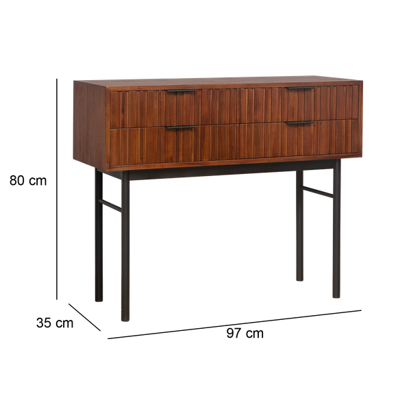 Modern Iron and Wooden Console Table 125x40x75 cm White Metal Frame and Teak Finish Top for Home Interiors$205