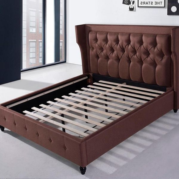 Brown Color Luxury Upholstered Bed with Ear Design Button Tufted$100
