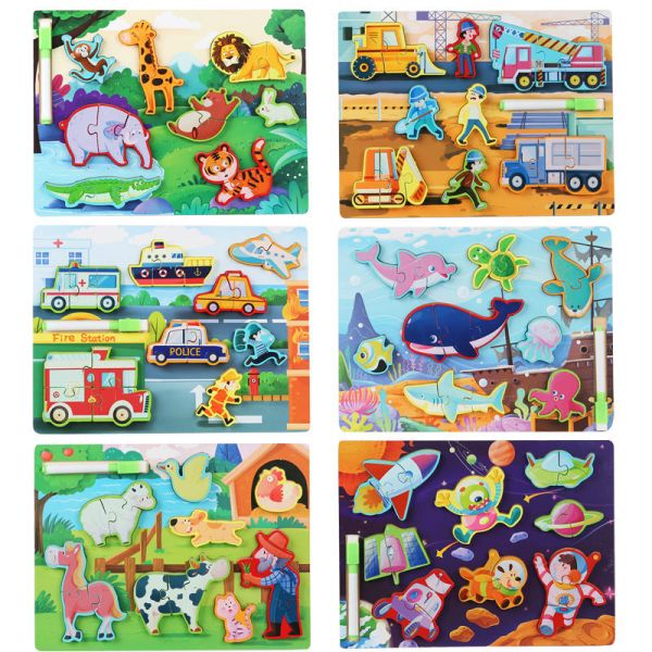 Factory Montessori Kids Educational Learning Toys Custom Children Baby 3D Animals Dinosaur Wooden Jigsaw Puzzle$0.32