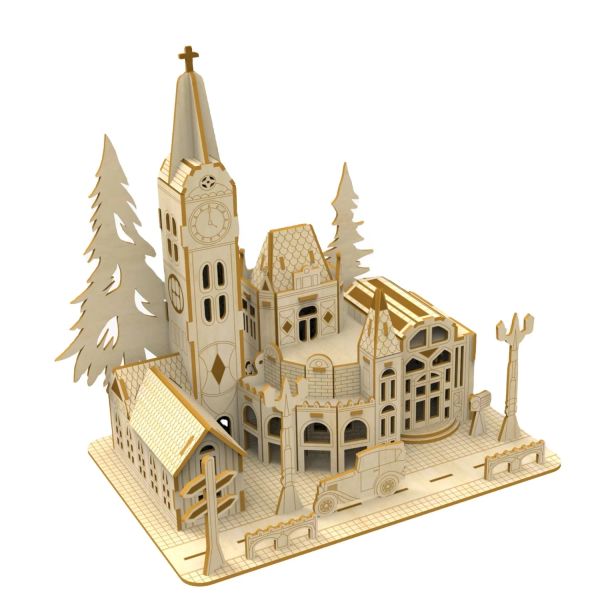 OEM DIY Craft Kit Euro Village Building Assembly 3D Wooden Puzzle Low Price Wholesale Kid Gift Education Toy Jigsaw Puzzles$3.6