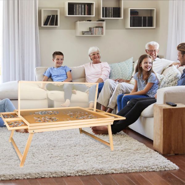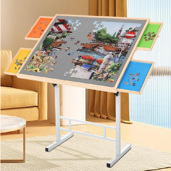 Puzzle Table with Drawers for Adults 1500 Pieces Angle & Height Adjustable Jigsaw Puzzle Table with Metal Legs$32