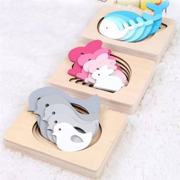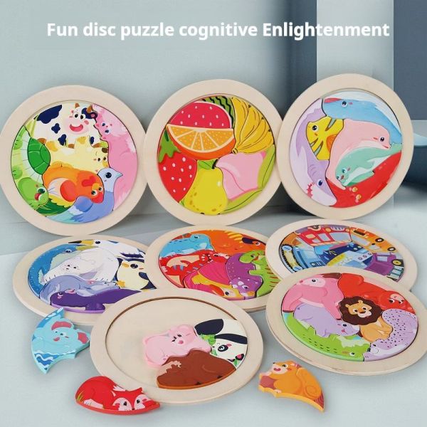 Wooden Puzzles Montessori Toys Logical Thinking Training Direction Color Cognition Early Learning Educational Toys for Children$2.6