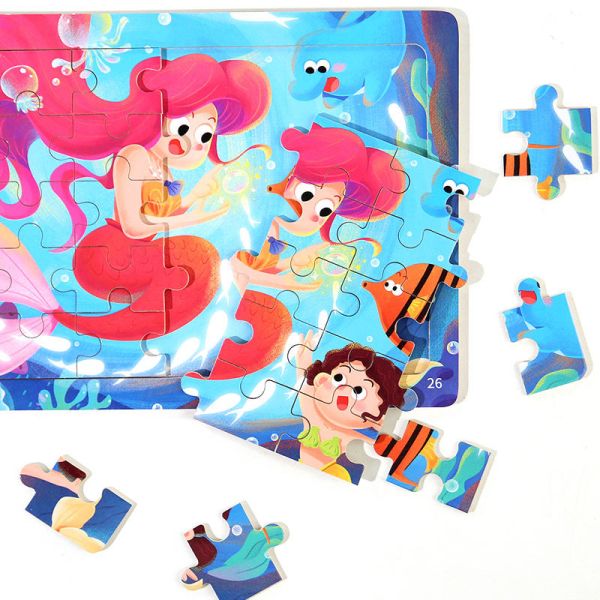 Wholesale Custom 24 Pieces Children Educational Cartoon Two-sided Jigsaw Puzzle Cardboard Puzzle for Kids$0.6