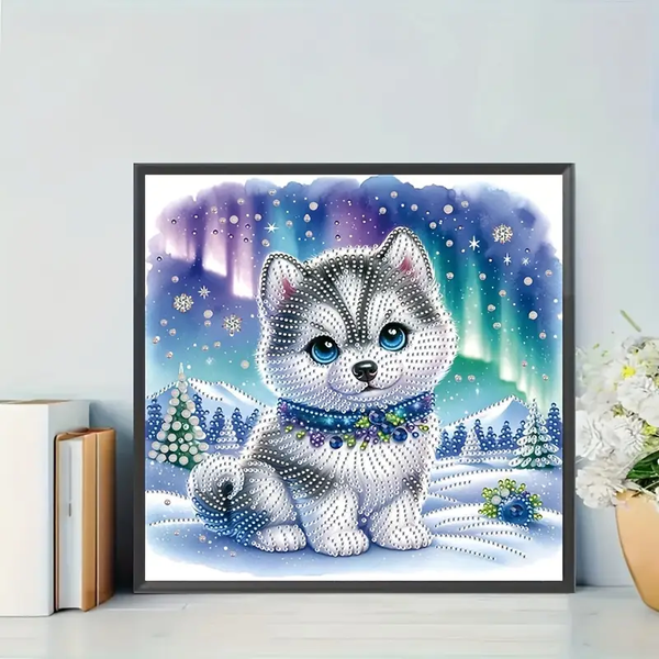 Wholesale Custom Huskies 5D Diamond Art Painting Kit, Full Round Resin DIY Diamond Painting with Framed Canvas for Decor$1.35