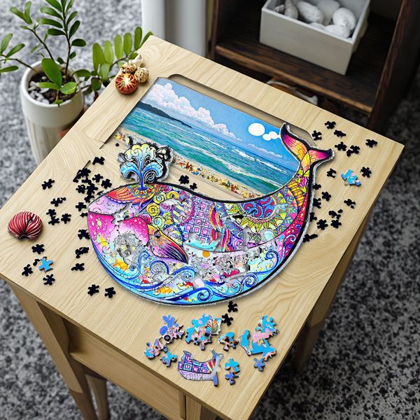 3D Wooden Puzzle for Kids Adults Unique Shapes Whale Design Educational Toy Jigsaw Puzzle Custom Animal Craft Family Game$2.8