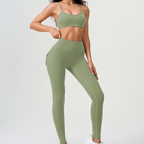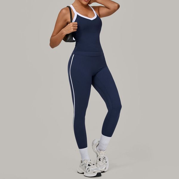 Popular Wholesale Women's Naked Yoga Sports Outdoor Slim Fit Suit Vest and Leggings Set for Women$11.9