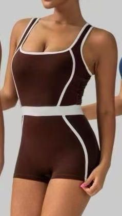 Seamless Contrast Color Side Stripes Slim Lift Girdling Yoga Bodysuit with Scrunch Butt Shorts Women Gym Fitness Jumpsuit$7.4