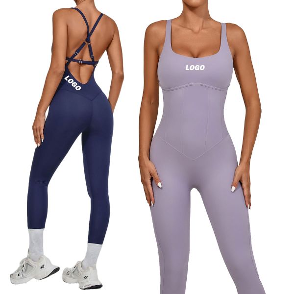 Women's Cross Back Yoga Jumpsuits Breathable One-Piece Leggings Gym Fitness Workout Rompers Women One Piece Gym Jumpsuits$12.7