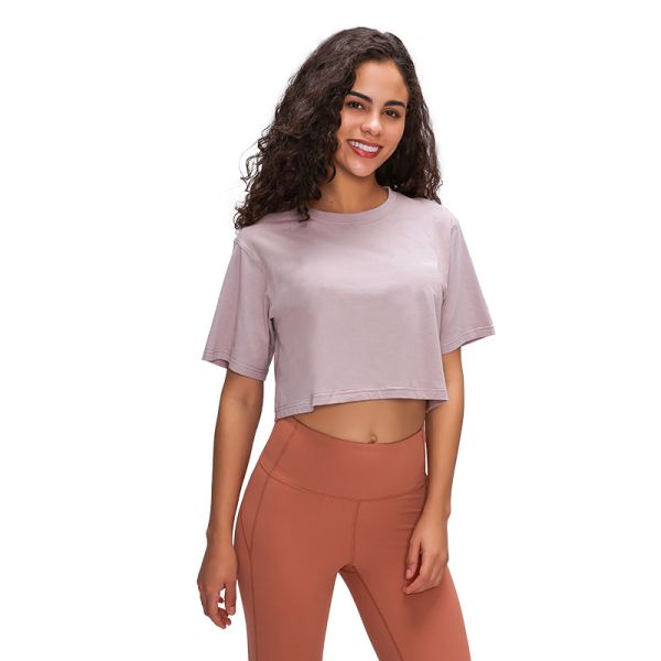 2020 China Manufacturer Custom Print Women Cotton Bulk Crop Tshirts Quick-Drying Breathable Yoga T Shirt$6.5