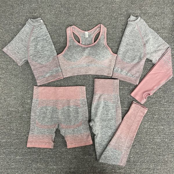 Custom New High Elastic Gym Wear Women High Waisted Yoga Set 5 Pieces Workout Set High Support Fitness Clothes Sets Woman$7.75